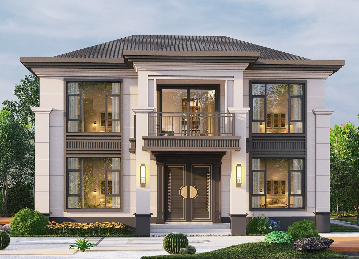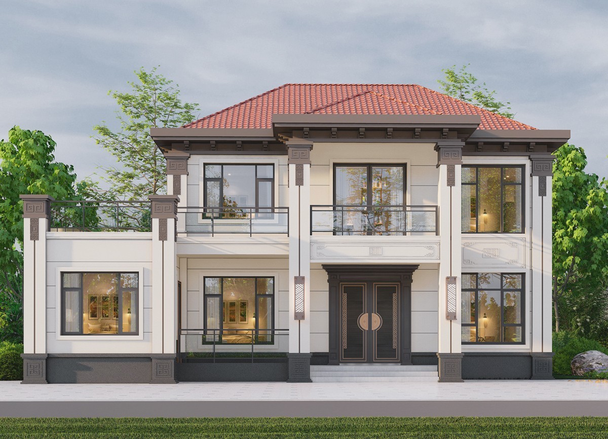 滨州005 两层新中式(11.36x11.76米)-【易设计】